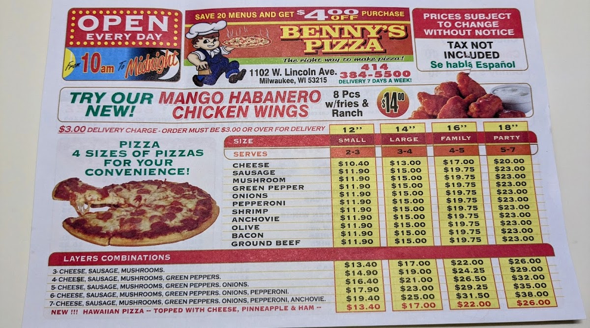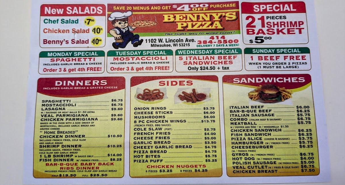 Introducing Benny's Pizza, a culinary gem nestled in the heart of Milwaukee. Located at 1102 W Lincoln Ave, this establishment boasts a diverse menu that caters to pizza enthusiasts and comfort food lovers alike. With rave reviews from loyal customers, Benny's offers a memorable dining experience characterized by delicious, high-quality ingredients.